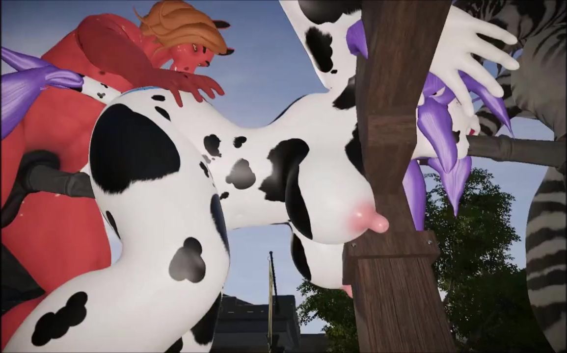 Busty 3D cat girls take huge monster cocks in a gangbang