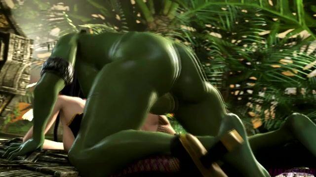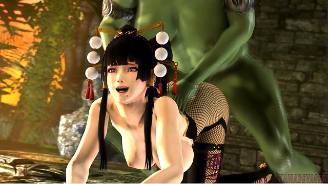 A dirty orc with a futanari cock fucks the hottie Nyotenga from the game Dead or Alive