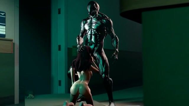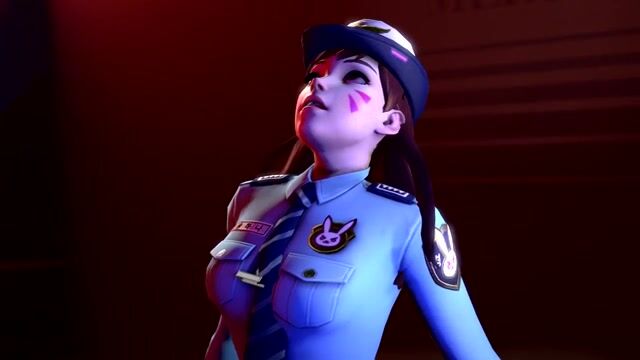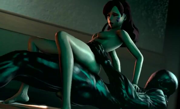 The cute girl D.Va from the game Overwatch worked as a police officer. Having arrived on a call to the laboratory, she encountered a horrible monster. He attacked the beauty and fucked her hard with his huge slippery cock.