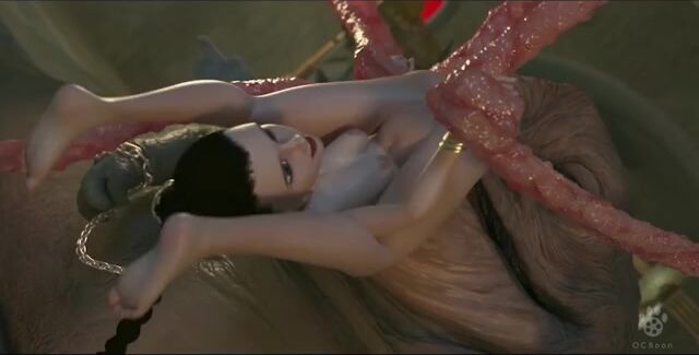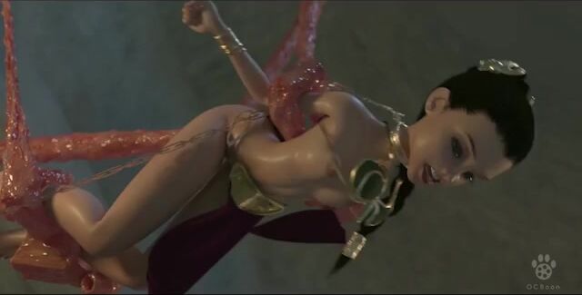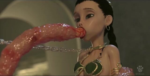 Traveling with Han Solo through the star galaxies, the beautiful Princess Leia was captured by the nasty monster Jabba the Hutt. He kept her on chains, and his long and dirty tentacles deeply fucked the beauty in all her holes.