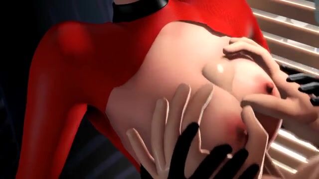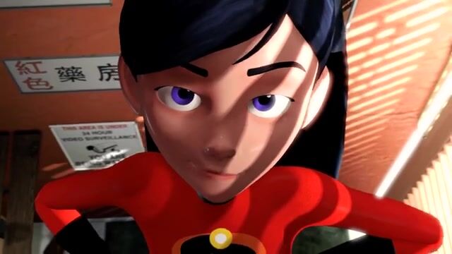 Hot mom Elastica looked in her daughter Violet's closet and saw her masturbating. Without thinking long, she pulled out a big futanari cock and made her daughter suck it. After a blowjob the heroines of Incredibles cartoon had sex.