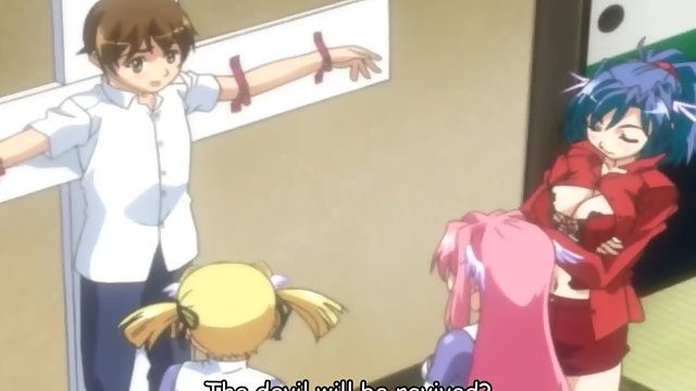 Anime girls suck cock and fuck a tied up guy