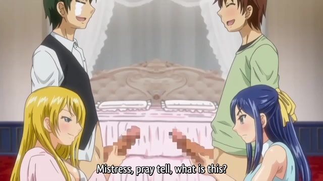Maids watch two princesses having group anal sex