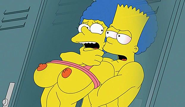 Marge Simpson decided to join the gym where her son has been going for a couple months now. But when she went into the locker room after the workout, she was in for a surprise. Bart pounced on his own mother and fucked her hard in the ass.