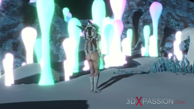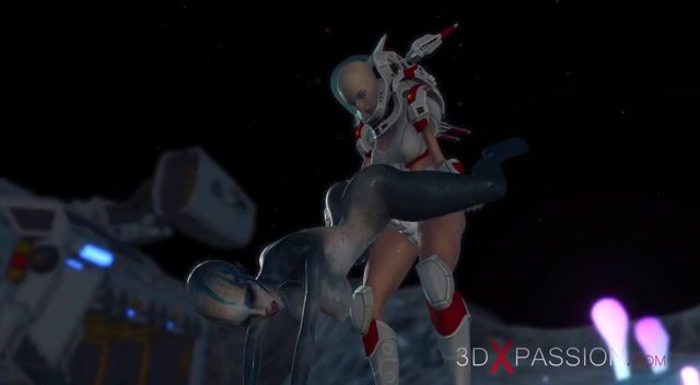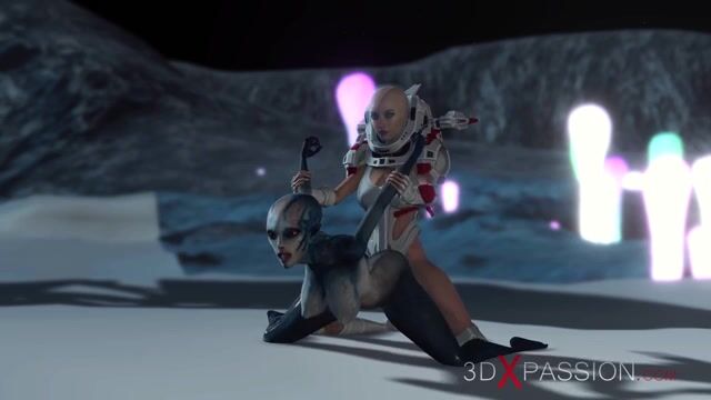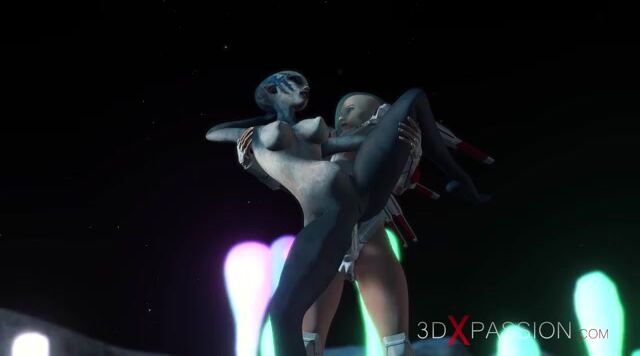 Female astronaut with a futanari cock fucks alien hottie in 3D cartoon