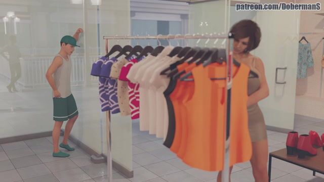 Horny stepmother with big 3D tits fucks stepson in the store