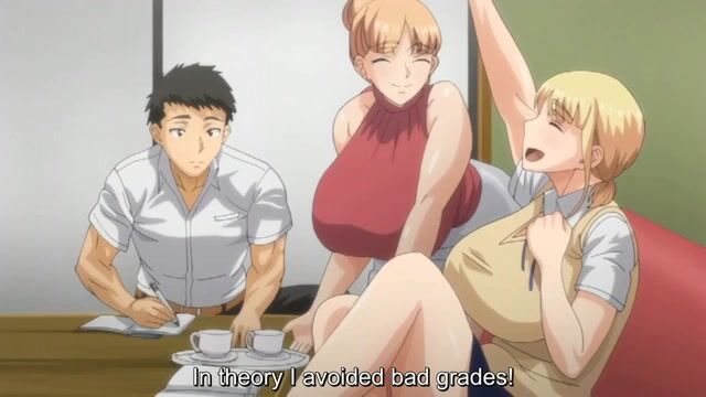 A cute blonde started bringing home her friend to help her with her studies. He was spotted by her busty mom. She caught up with the guy when he was at their house and firmly squeezed his cock between her huge tits. After that, he fucked her.