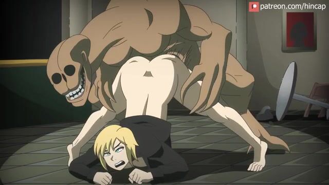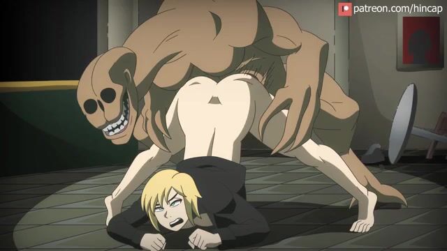 The heroine of the anime cartoon came to the werewolf girl to take her away and imprison her. But she turned into a horrible monster with a big cock and attacked her. The monster fucked the blonde hard and cum inside her, then became a girl again.... the deed is done!