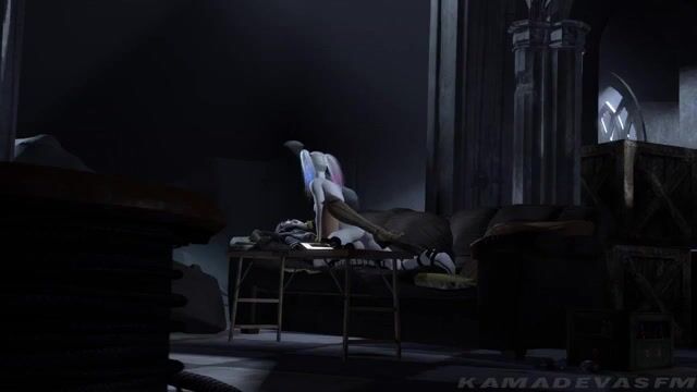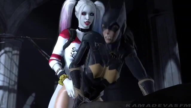 Batman and Batgirl came to the Joker's lair to deal with him and his girlfriend Harley Quinn. While Batman fought a mob of bullies, his girlfriend found Harley. But instead of arresting her, she put her wet pussy under her futanari cock.