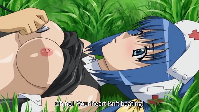 Two hentai nurses with big tits fuck in the woods with a lucky guy