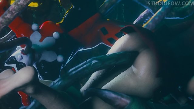 Alien monster's tentacles fuck Harley Quinn and Poison Ivy in 3D cartoon