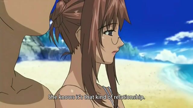 Busty milf fucks on the beach with young lover in hentai porn