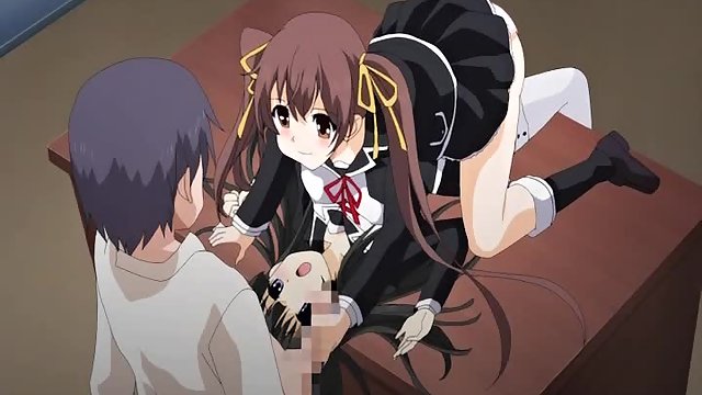 Busty hentai schoolgirls tie up and fuck a virgin classmate