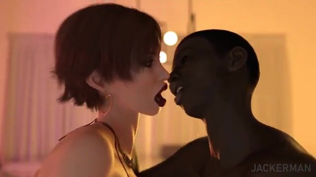Bad black guy fucks a busty milf with a big dick in a 3D cartoon