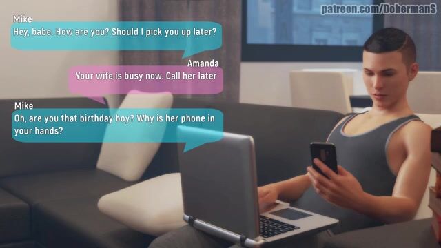 Cuckold husband in 3D cartoon talks on the phone with his wife fucking his lover