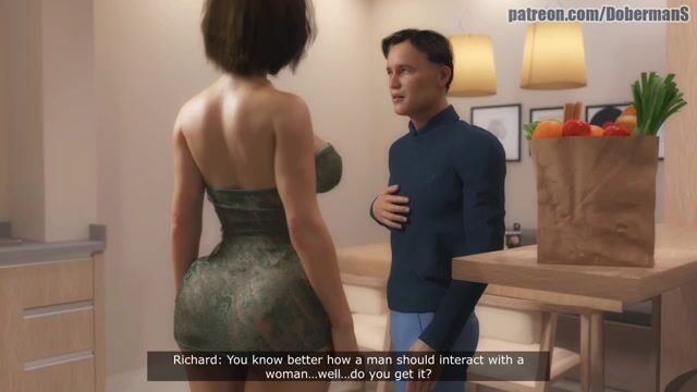 Mom's problem is a tyrant husband who won't have sex with her. Son's problem is no girlfriend and no sex. So why not help each other out? As soon as the husband leaves, the busty mom comes to her stepson and plays with his big cock.