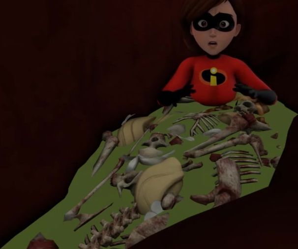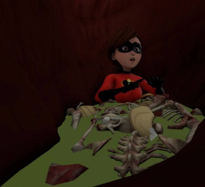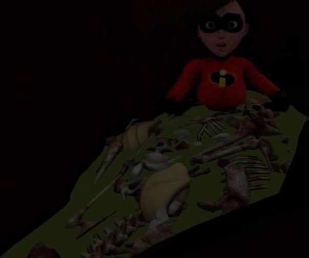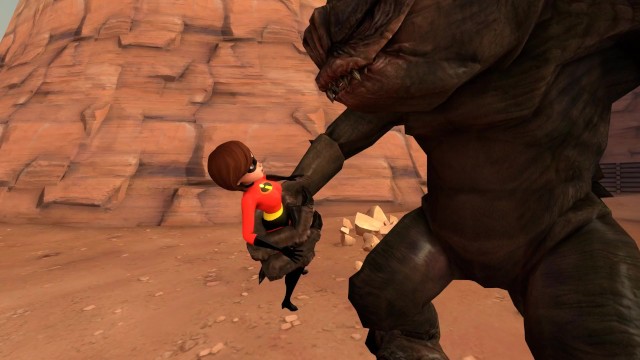 Helen Parr, aka Elastica, went out alone to fight against a terrible monster. He easily grabbed her and stuffed her whole into his mouth. The monster swallowed the superhero and she ended up in his stomach.