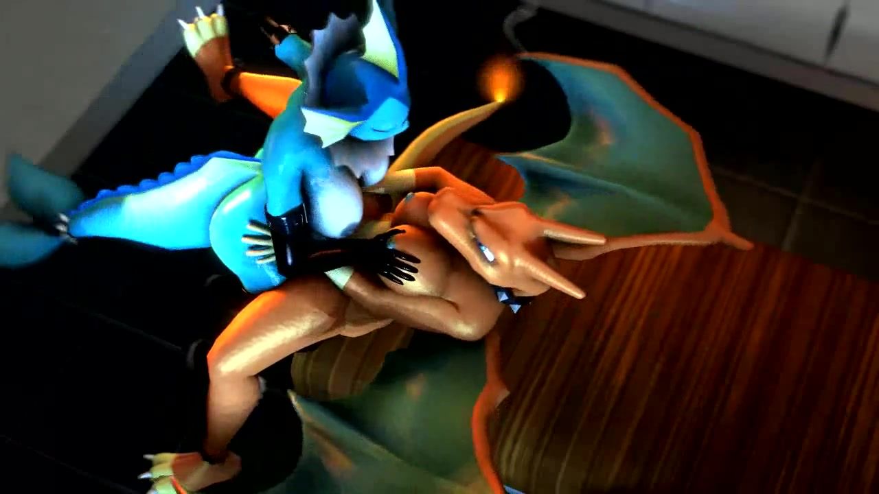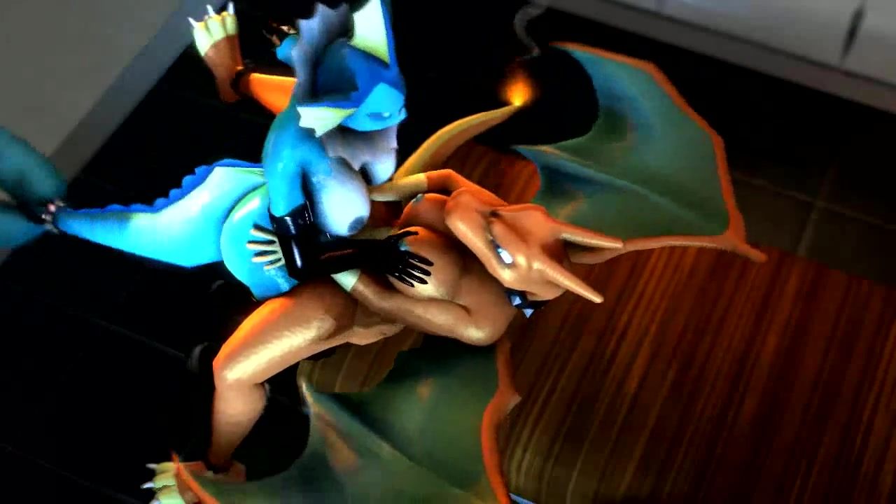 A sea pokemon with a futanari dick fucks a Chirizard on the table