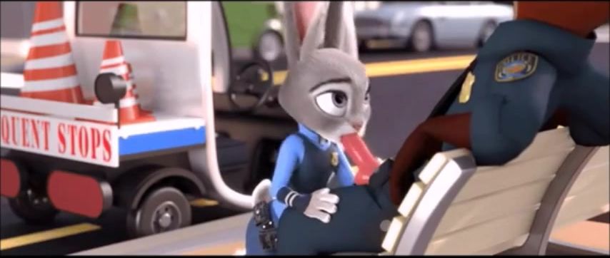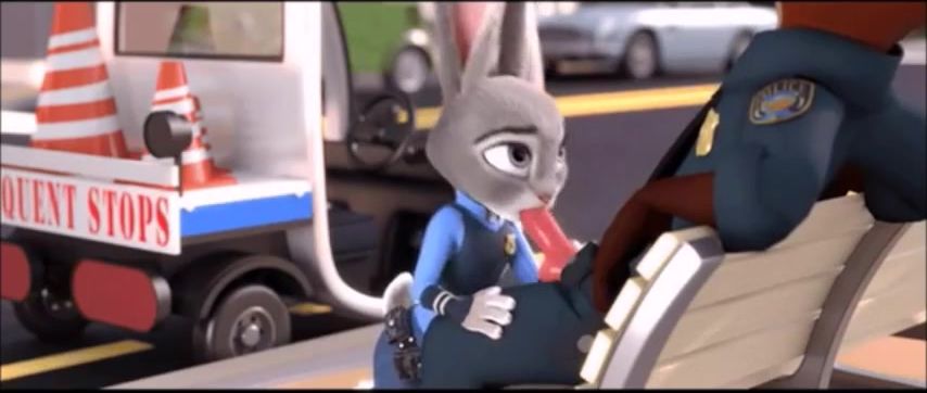 Police bunny Judy Hops sucks on the street from a partner in a XXX cartoon