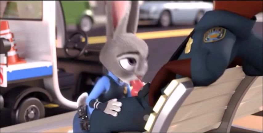 A sexy bunny in a police uniform took her partner's penis in her mouth when they were taking a break from work. Satisfied fox Nick Wilde was sitting on a bench, and she was giving him a beautiful blowjob on the street.