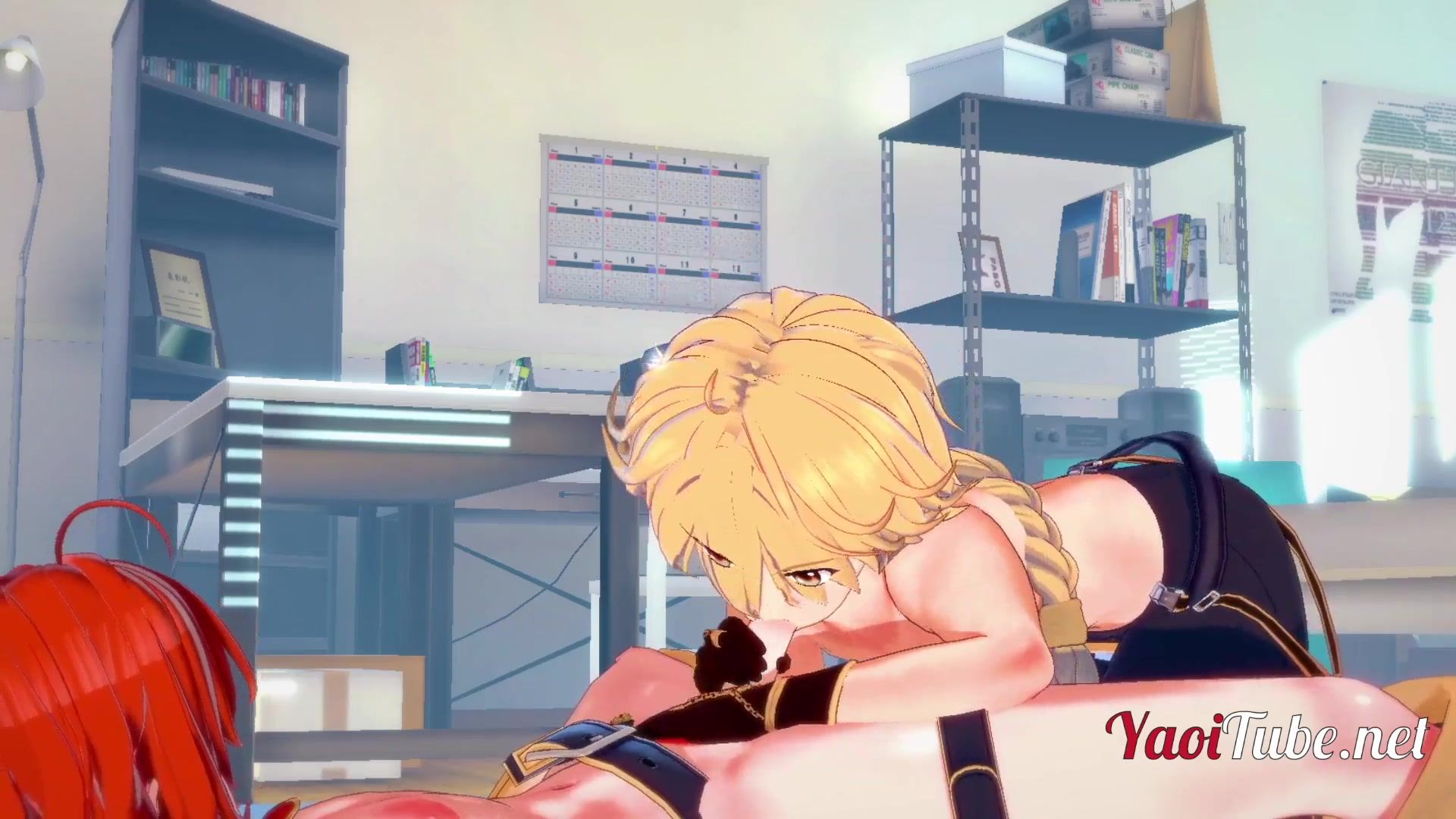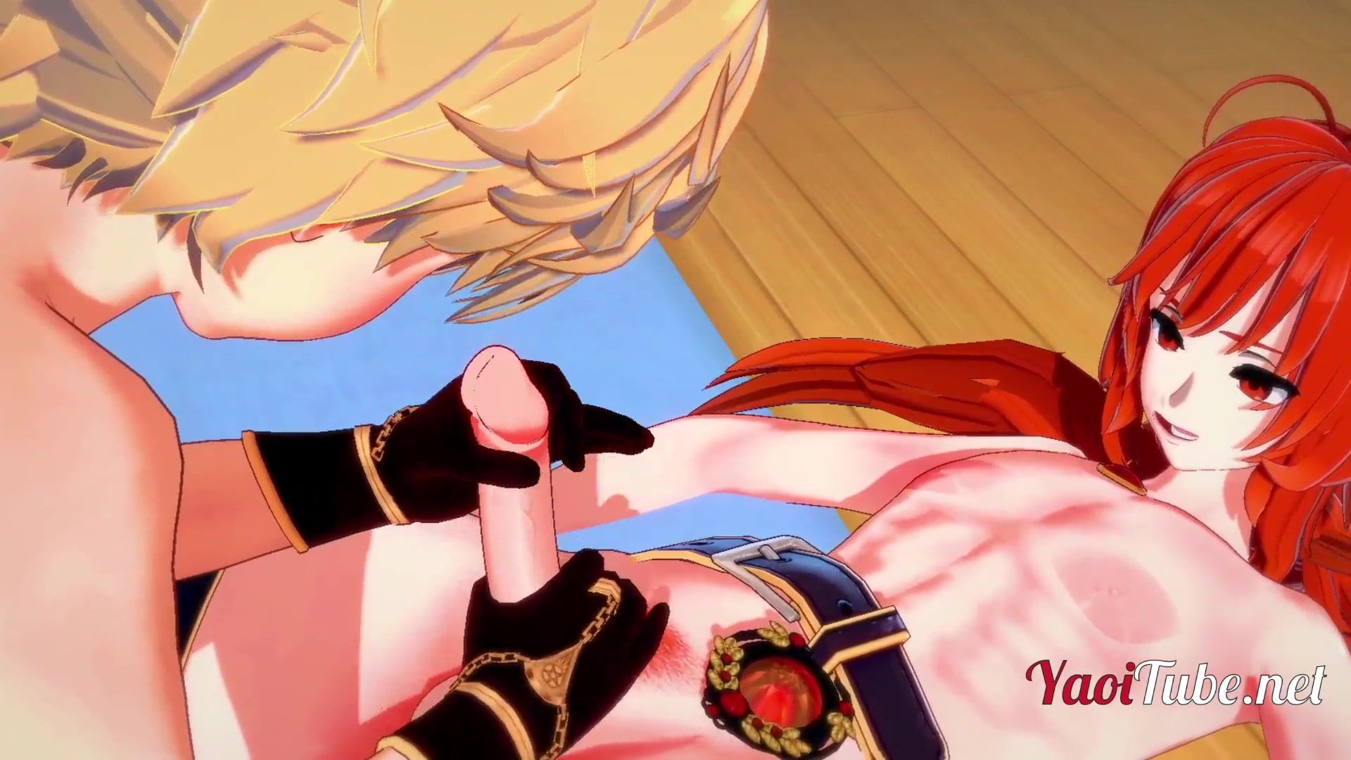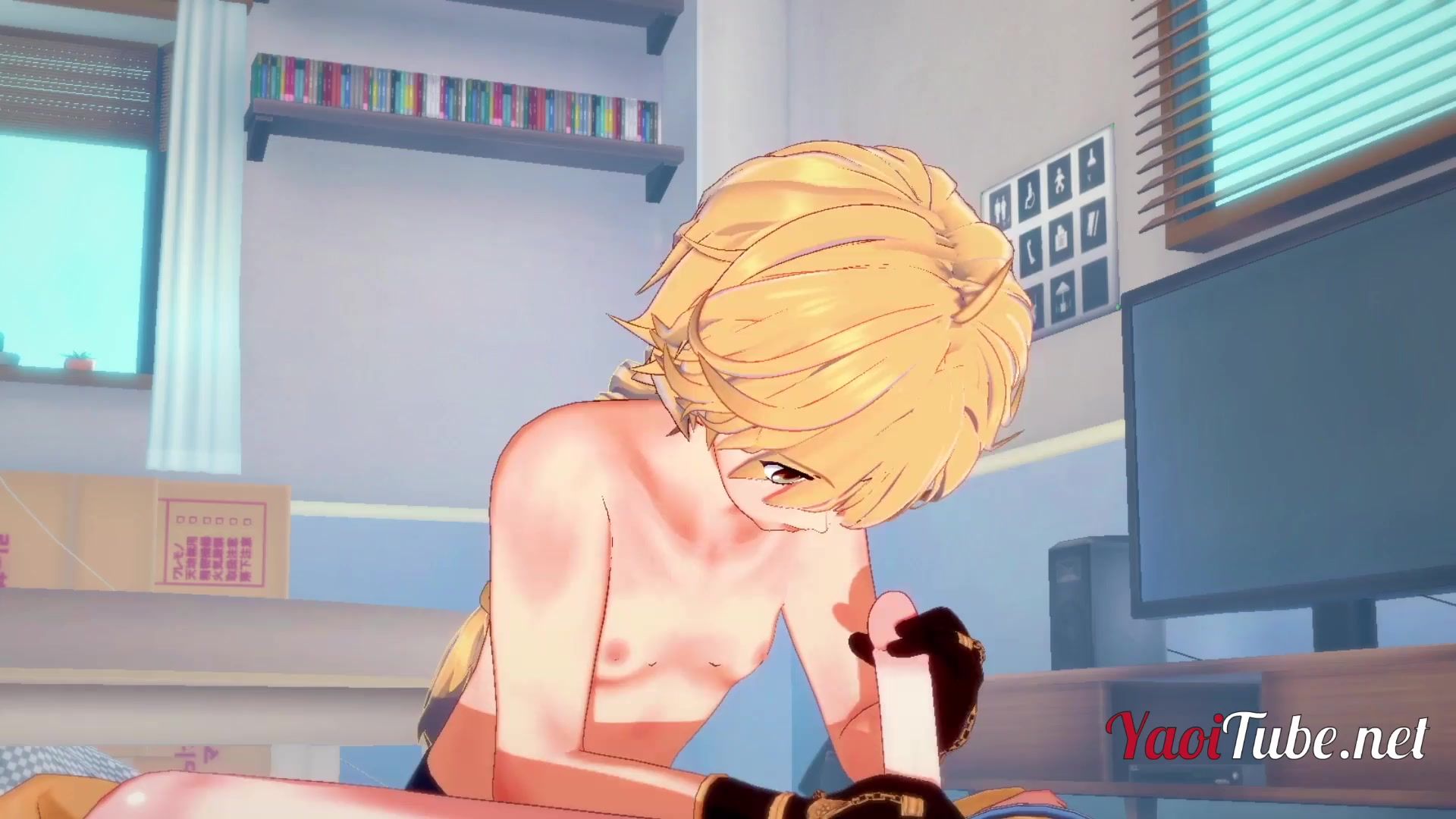 Playing the video game Genshin Impact, you probably didn't know that Aether and Diluc are gay lovers. This animated video is an excellent confirmation of that. Watch as Aether gives a blowjob to a Diluc friend and gets his cum.