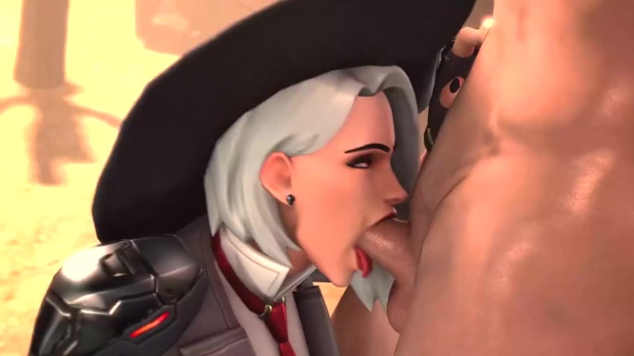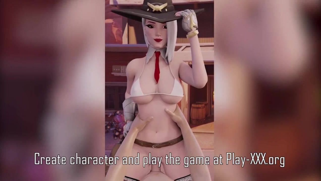 Naughty 3D anime cutie Ashe Ow milks big dicks in Overwatch