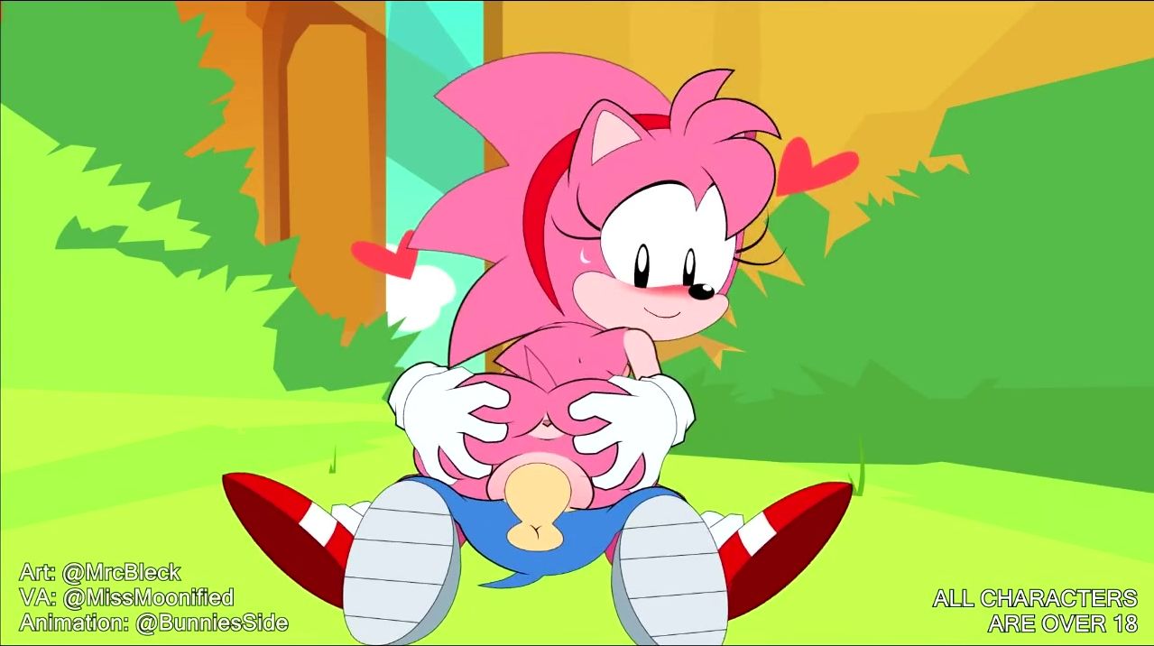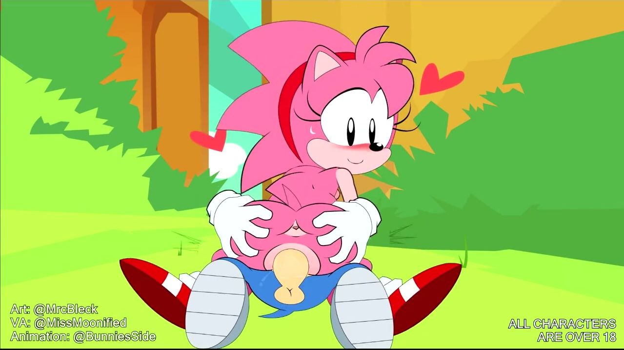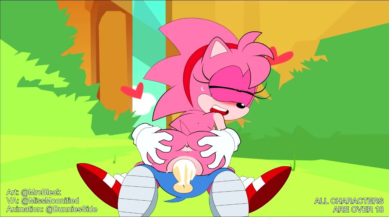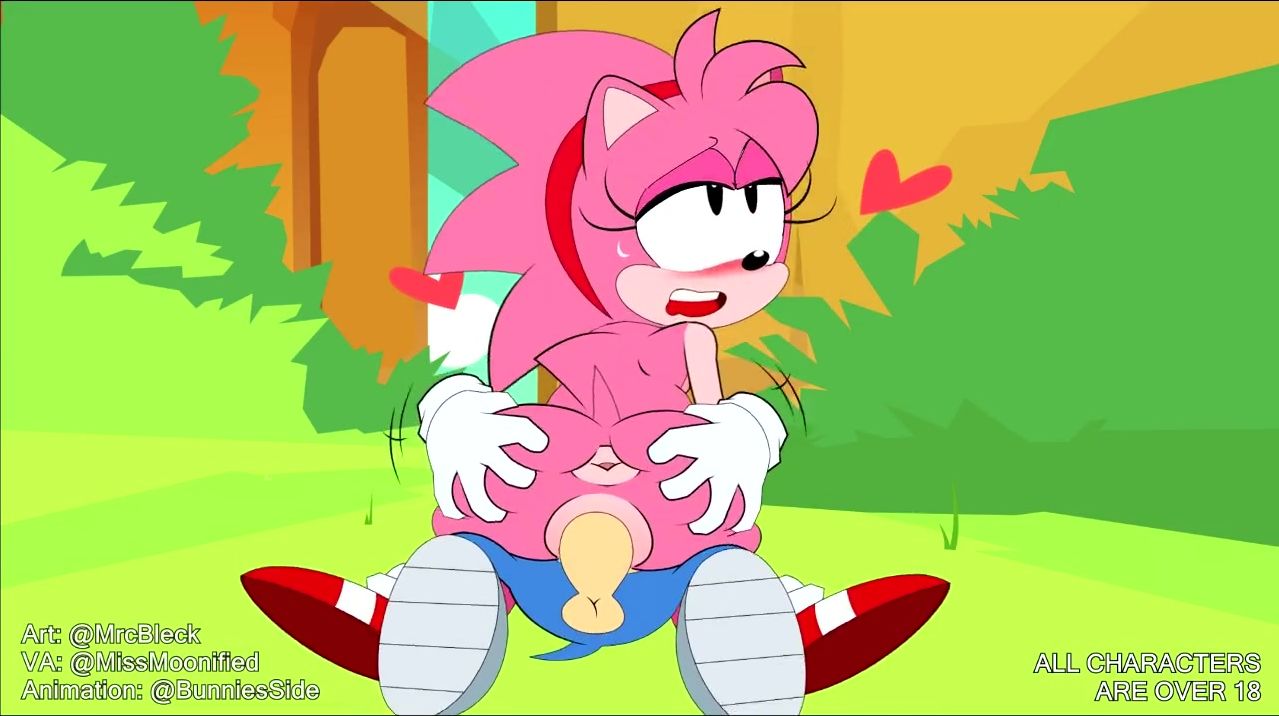Innocent cartoon sweetie Amy Rose riding Sonic The Hedgehog outside