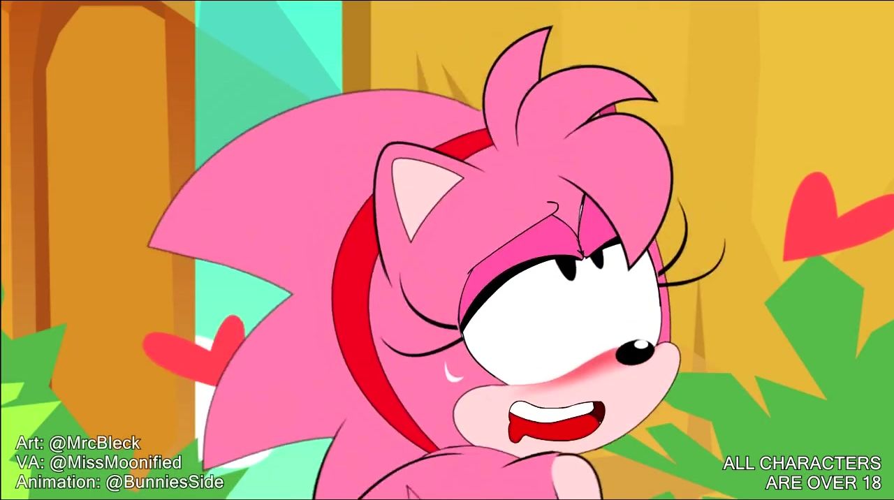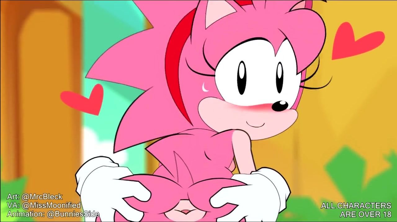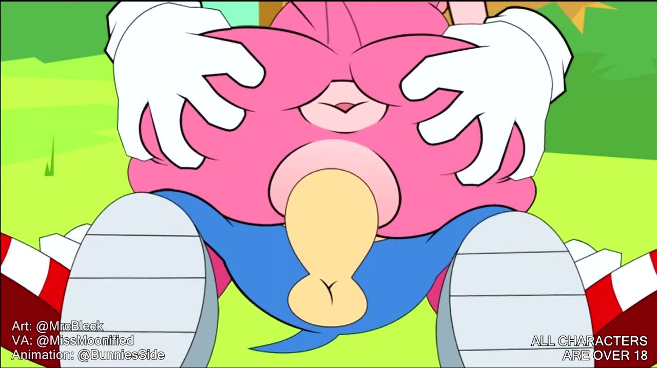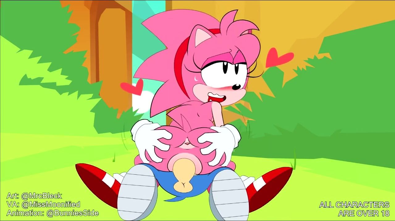 Innocent cartoon sweetie Amy Rose riding Sonic The Hedgehog outside