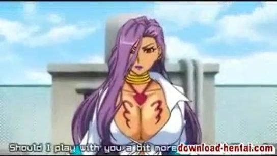 Powerful and busty purple-haired hentai lesbian banging with tentacles