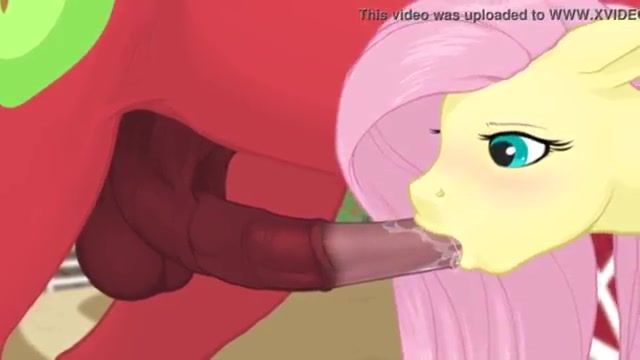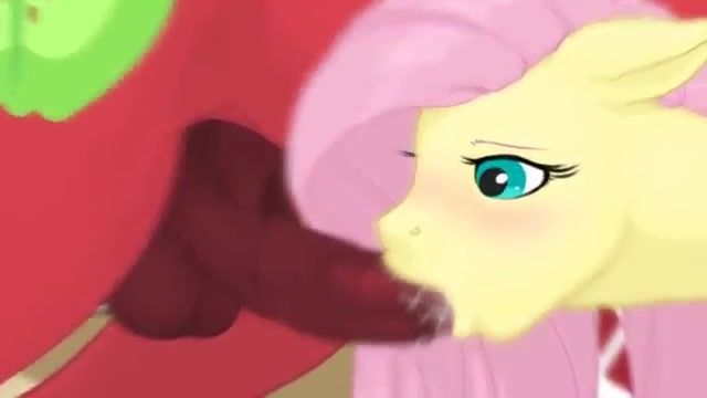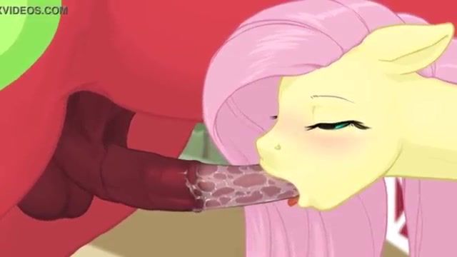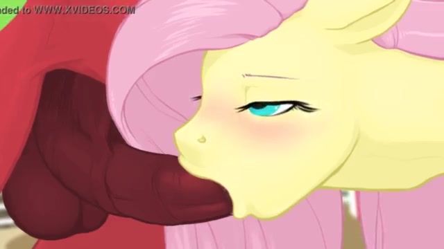 Shy cartoon pony chick Fluttershy sucks on huge horse cock