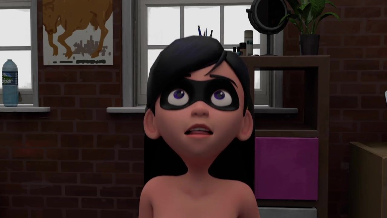 Cute Incredibles 3D teen Violet Parr riding huge dildo