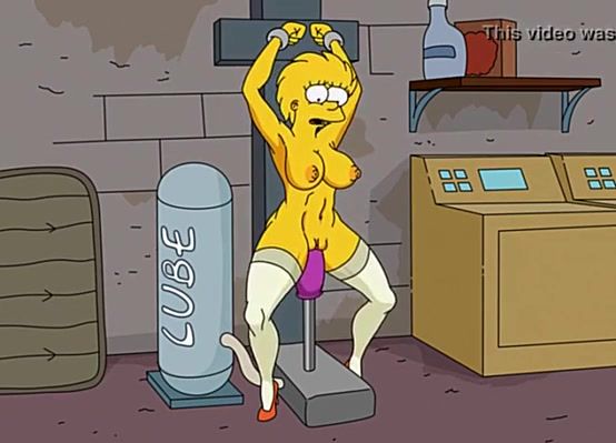 Horny cartoon hottie Lisa Simpson riding a huge fuck machine