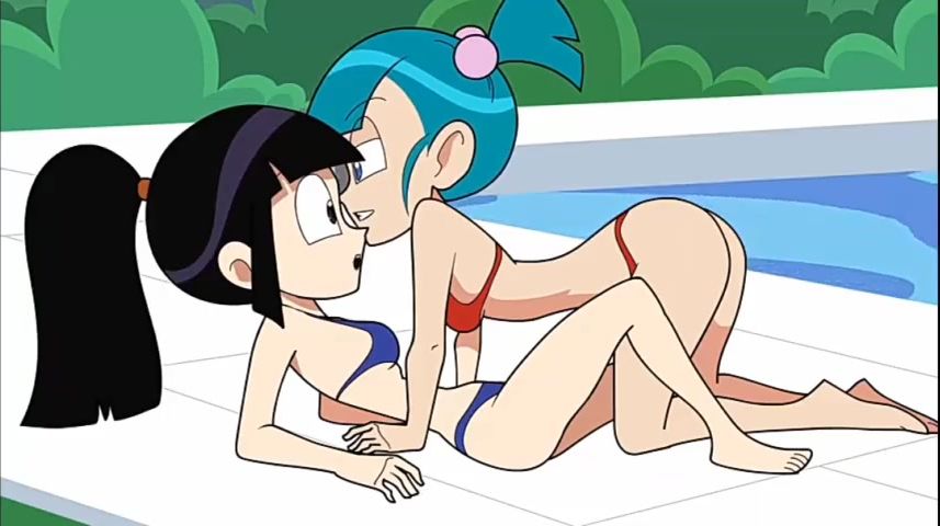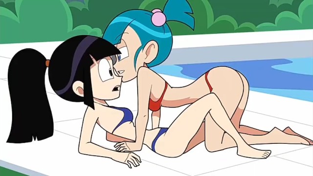 Kinky blue-haired cartoon Bulma seduced and banged shy Chichi