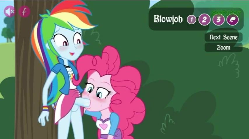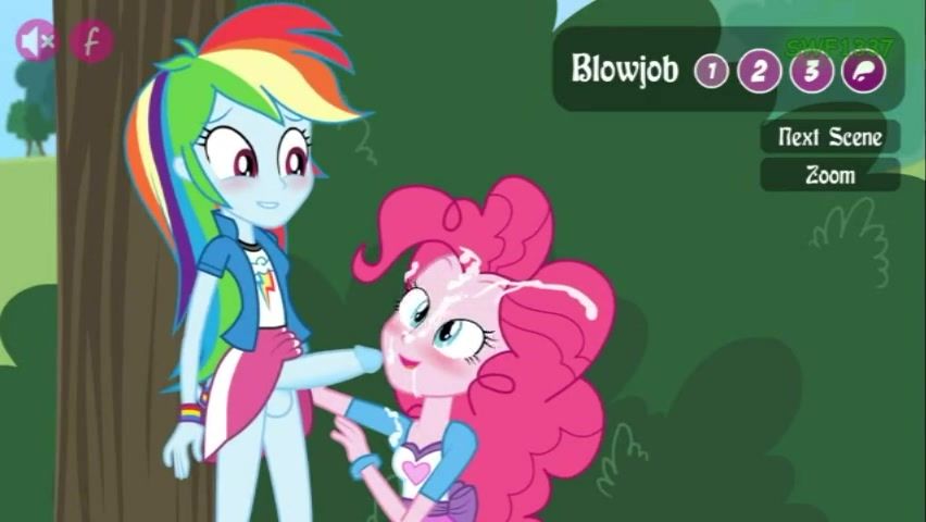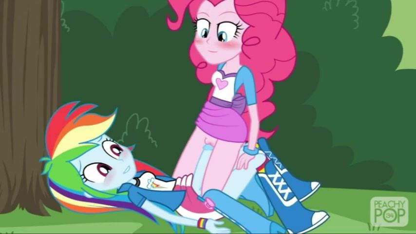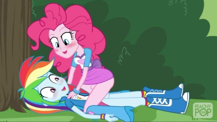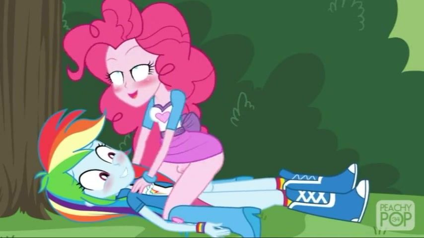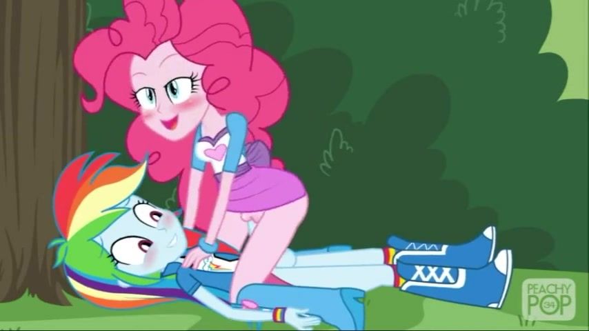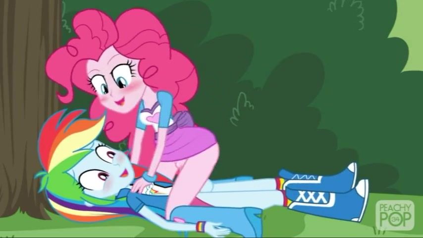 Horny cartoon pony Pinkie Pie riding Rainbow Dash's big dick