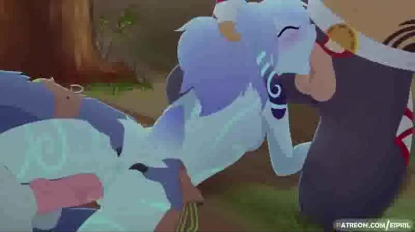Beautiful and curvy furry hottie creampied in a rough threesome