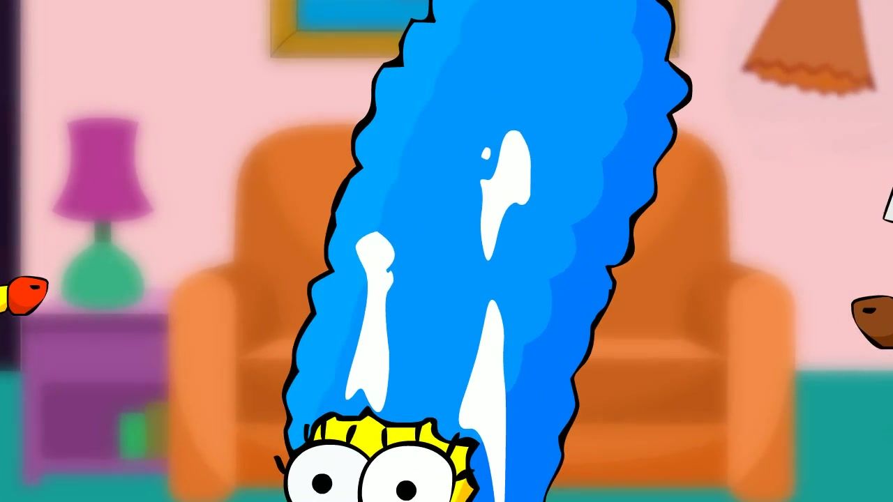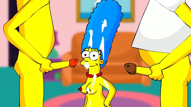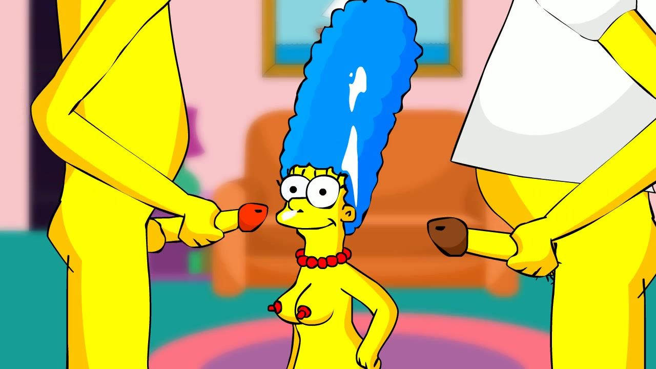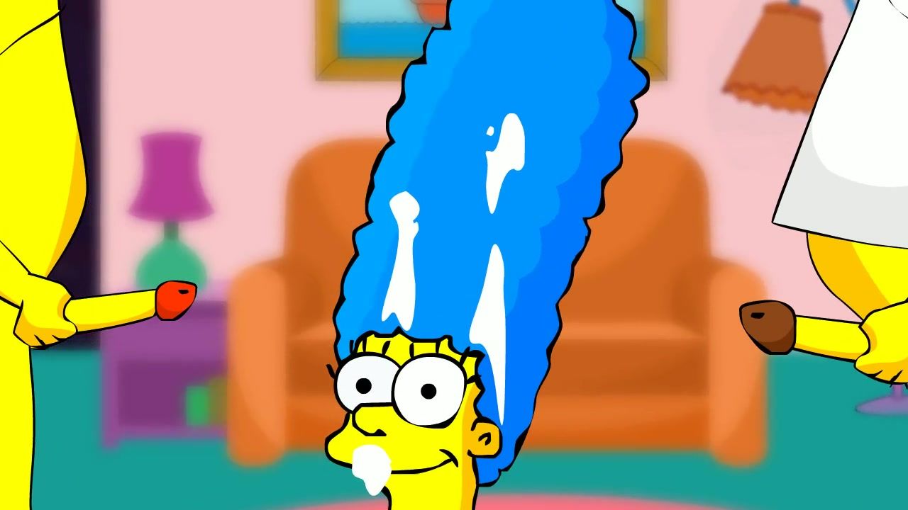 Delicious cartoon wife Marge Simpson got cumshot with two rods