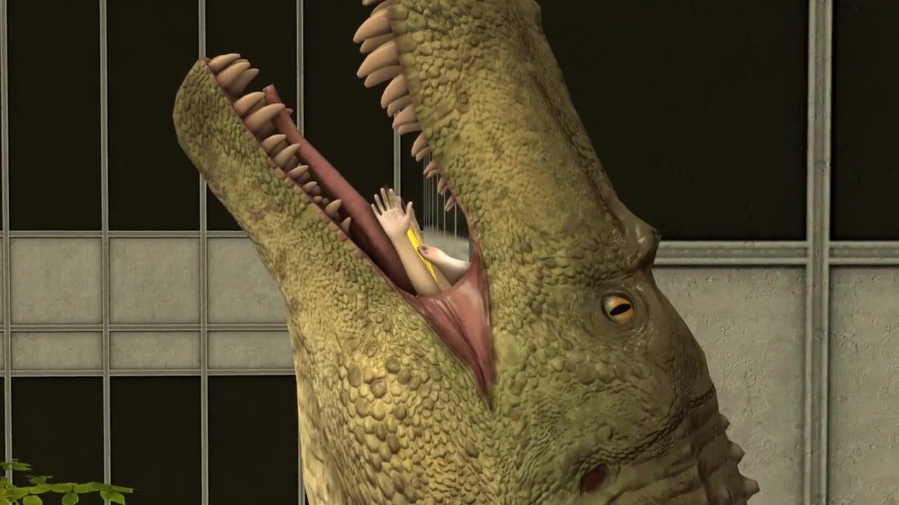 Dinosaur swallowed all the Disney princesses in a mini-bikini