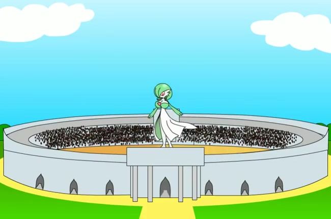 Gigantic Gardevoir grows and eats everything around in an animated video