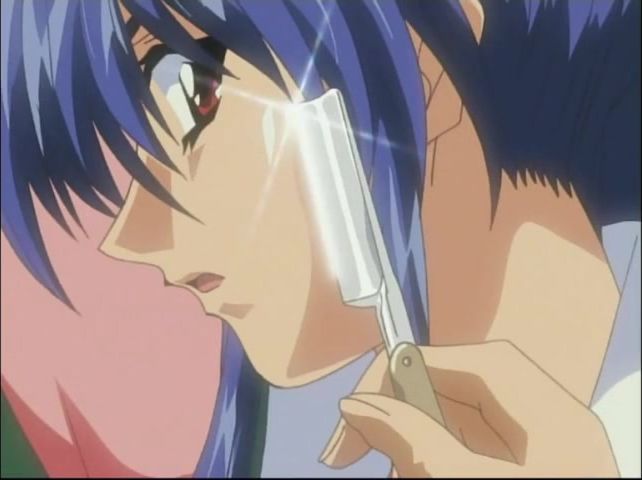 Busty blue-haired anime chick bound and fingered hard