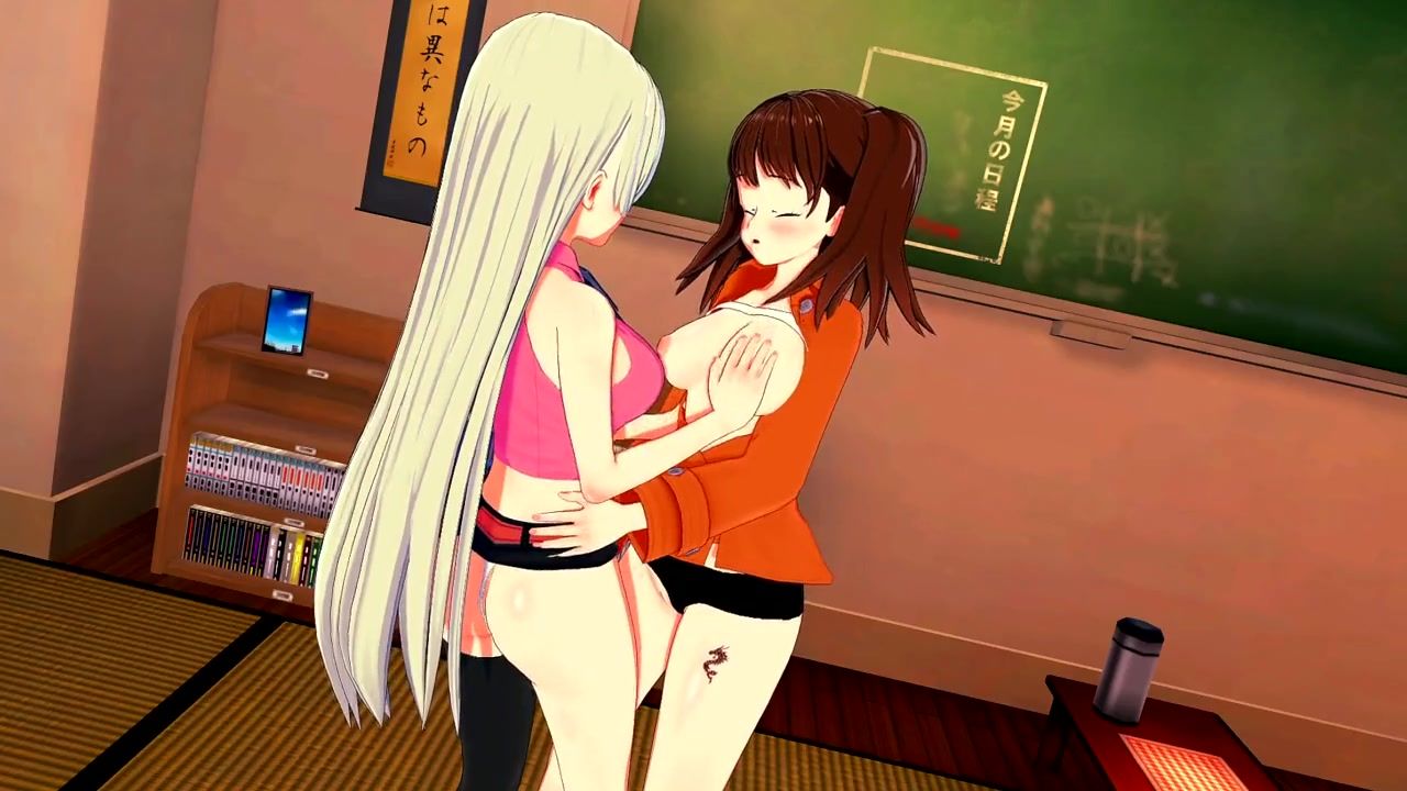 Elizabeth Lyons and Diane are two anime girls who really like sex. Today the beauties seduce their friend, the two of them give him a blowjob and then fuck hot. One of the girls sits on her face and the other jumps on his cock and has a hot orgasm. Awesome threesome sex.