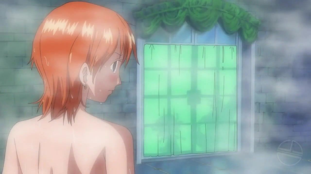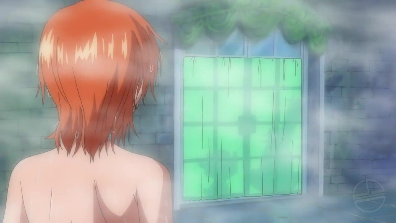 The red-haired anime girl Nami went to the bathroom to clean herself up. Nice titted teen gets naked, takes a hot shower and gets horny. She is very turned on, that pink nipples are already sticking out. The girl could not understand what was happening, but she was so good that she experienced a mini orgasm.