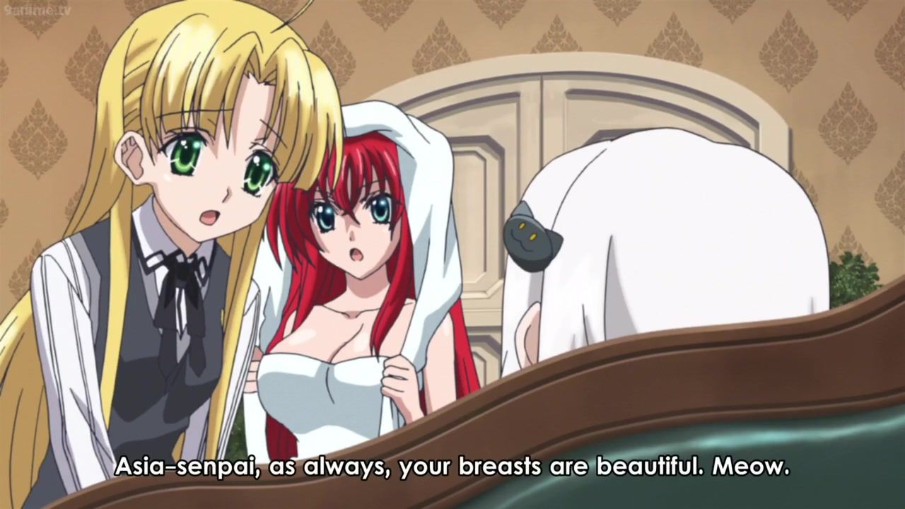 Sexy busty characters of anime cartoon High school dxd were bored after school. Koneko Tojo invited Rias Gremory and Asia Argento to play pranks and the girls began to undress. Naked beauties with big boobs caressed each other, intending to have a lesbian threesome.