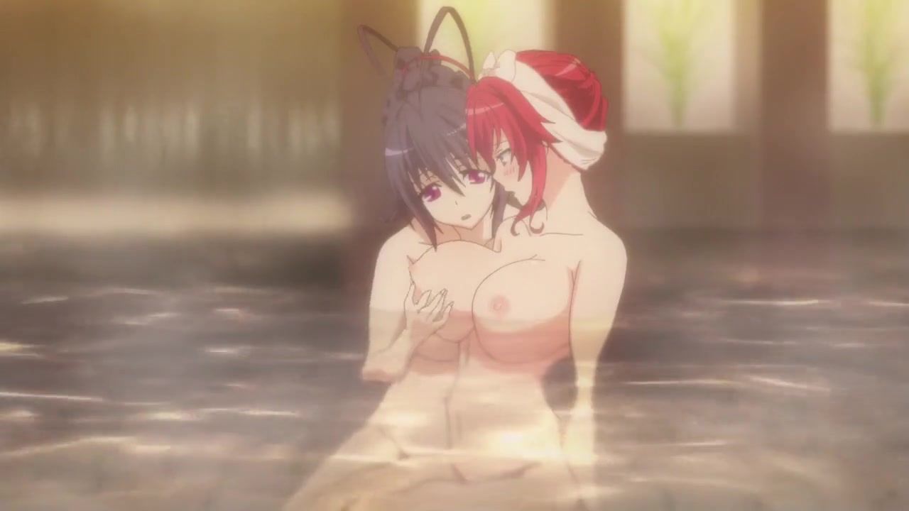 Sexy Japanese Akeno Himejima from anime hentai cartoon High school dxd swam in the pool with her friends. The girls knew each other well, so they swam naked. Her friend's big boobs caught Akeno's attention and she really wanted to play with them.