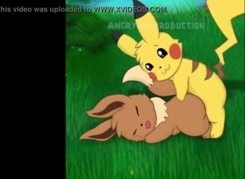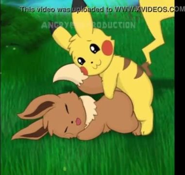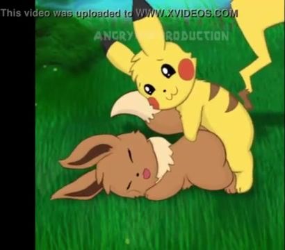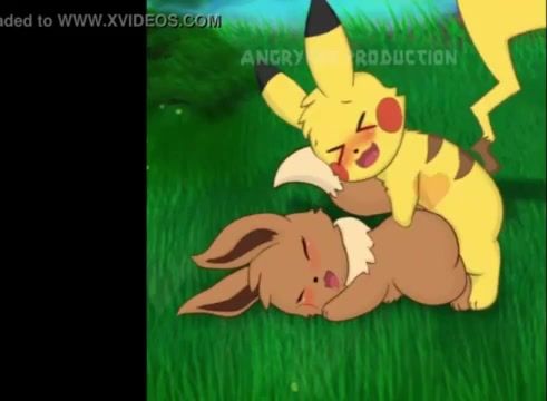 Pikachu lights up Eevee's Pokemon pussy