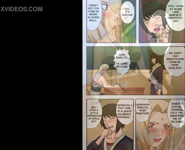 Do you miss 3D cartoon comics? Then here's a comic with the characters of the Japanese anime cartoon Naruto. Experienced lover Naruto skillfully caresses Tsunade's big tits and pussy, then fucks her while she's sitting at the reception.