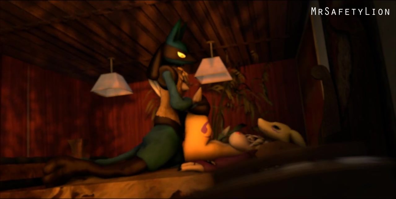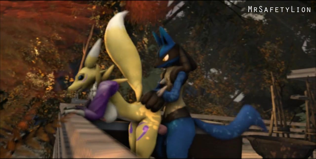 A strong Pokemon Lucario just on the street inserted a penis into the vagina of a busty girlfriend Renamon. They fucked in the doggy pose, but then returned to the house and tried many other poses.