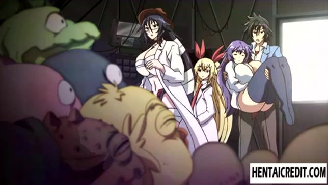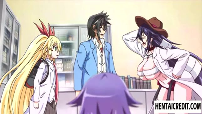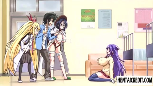 Busty hentai schoolgirls tie up and fuck a virgin classmate