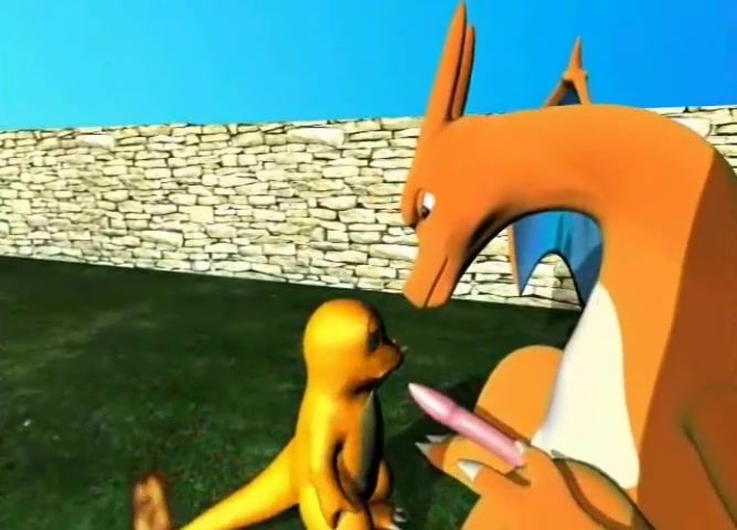 Baby Charmander sucks a huge cock of the dragon Chirizard