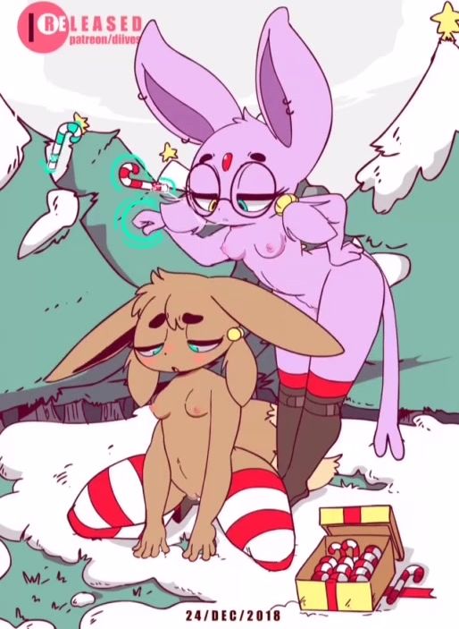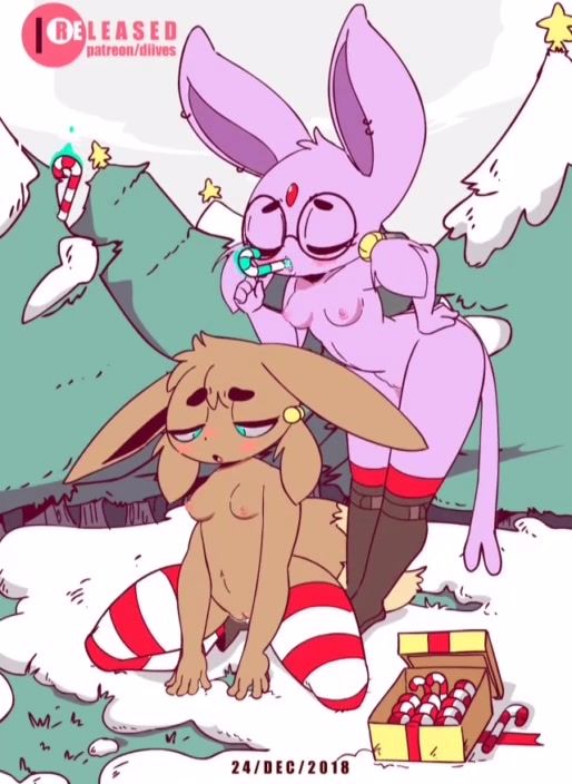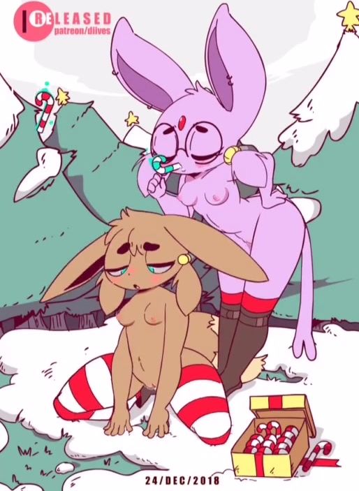 Two sexy Pokemon Espeon and Ivy wanted to have lesbian sex. They gently caressed each other with tongues, and then tried something new. The beauties began to masturbate with long candies.