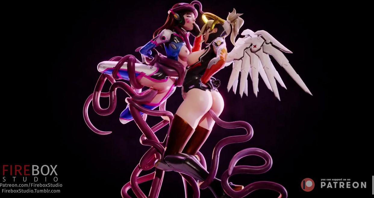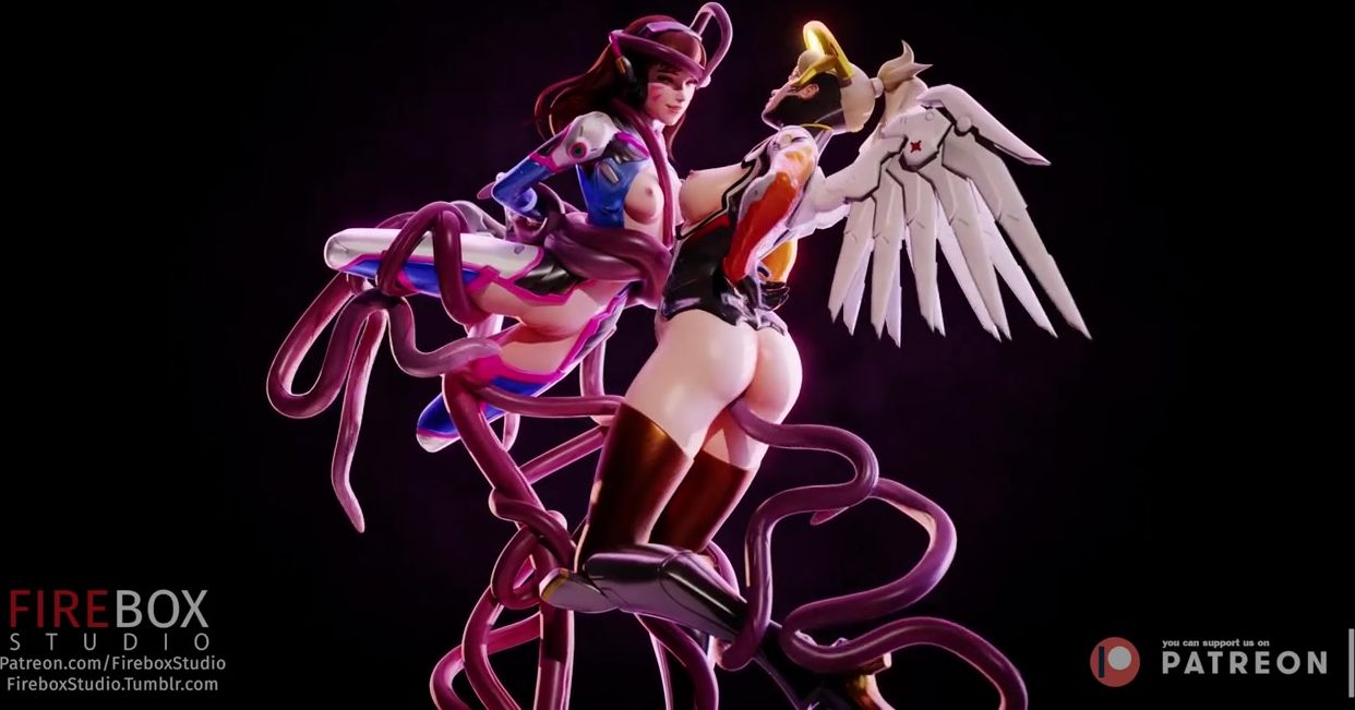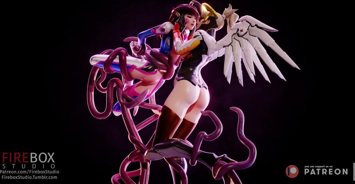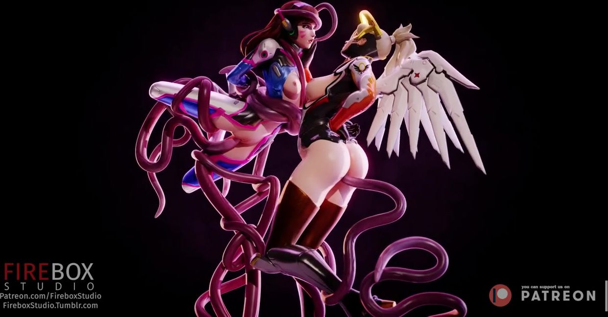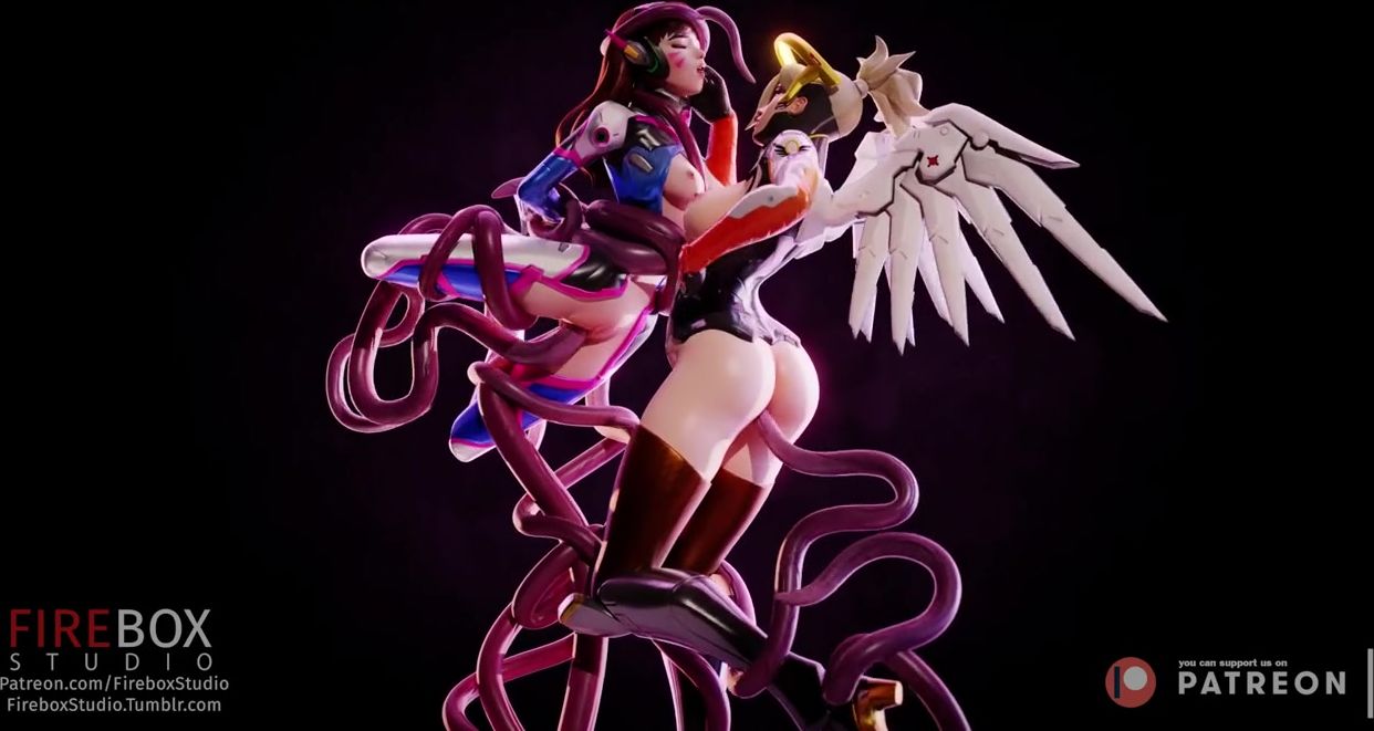 3d tentacles penetrate deep into girls D.Va and Mercy